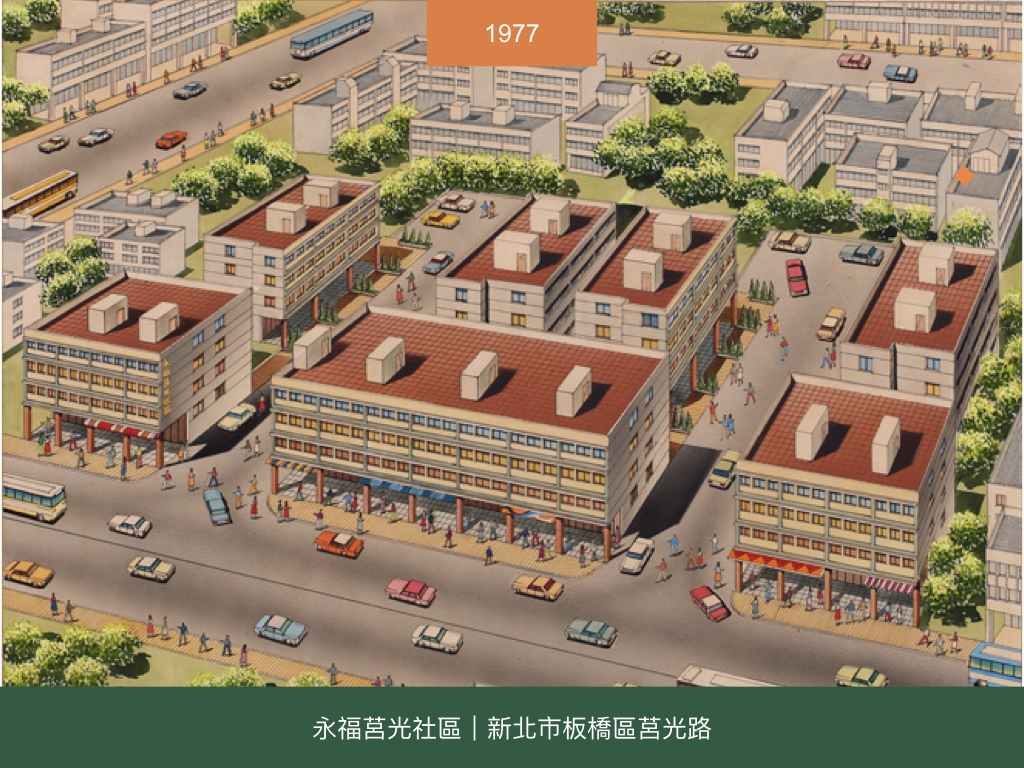 ◎1977年『永福莒光社區』新北市板橋區莒光路再⼀波搶購社區住家風潮。
