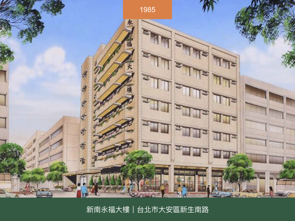 ◎1985年『永福⼤樓』台北市⼤安區新生南路七層辦公大樓。