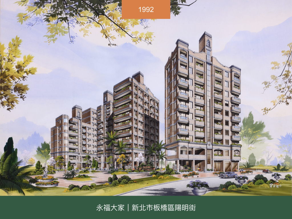 ◎1992年『永福大家』新北市板橋區陽明街十層開放空間花園豪邸新風格。